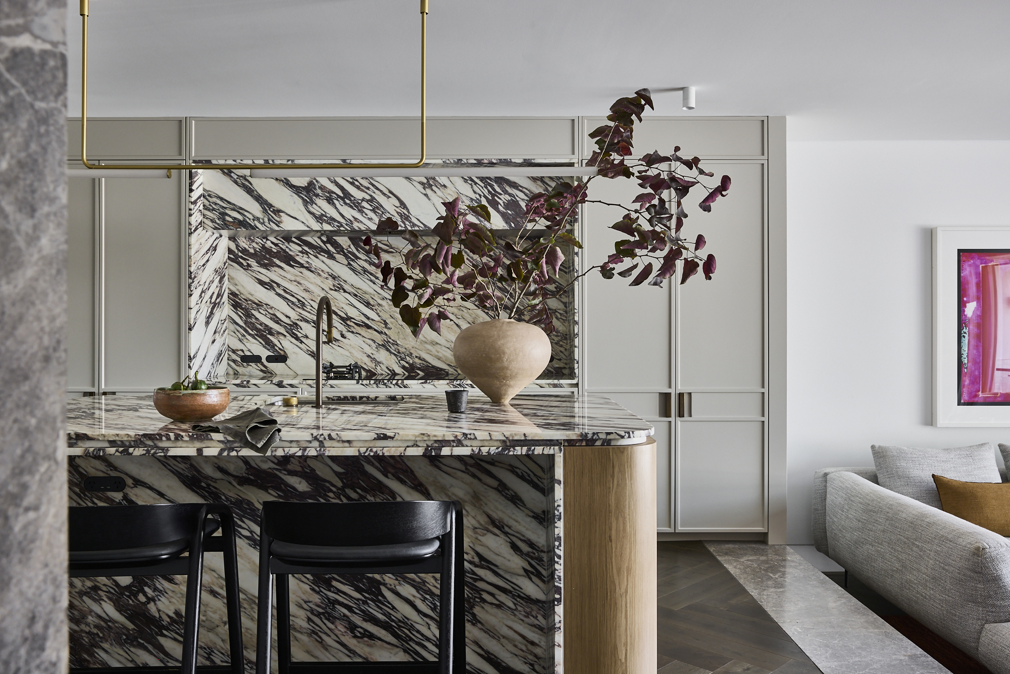 Calacatta Viola Extra takes this classic marble to a whole new level. With its striking burgundy veining against an off-white background, this dramatic stone makes a superb impact. The deep maroon contrasts beautifully with the creamy white, softened by golden tones and some green veining , creating a unique and pleasing selection of Viola. Chosen for its exceptional vein structure and clean warm background tone, this batch of Viola truly stands out from the crowd.